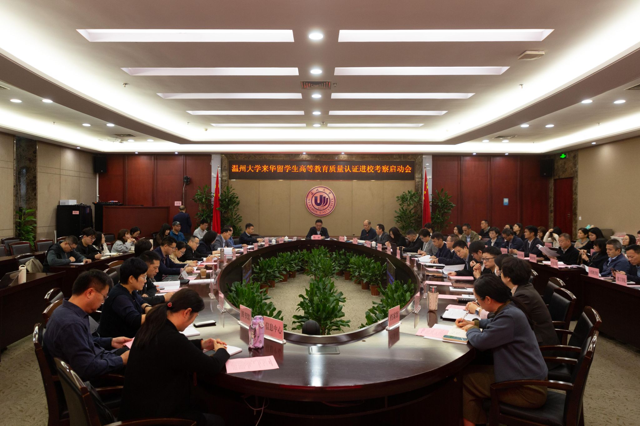 4月27日上午,beat365中文官方网站来华留学生高等教育质量认证进校考察启动会在南校区岩松堂白鹿厅举行。校党委书记钱强出席会议并讲话,浙江省教育厅国际处一级调研员杜健到会指导,特邀专家,各职能部门、相关学院负责人等参加会议。会议由王舜主持。