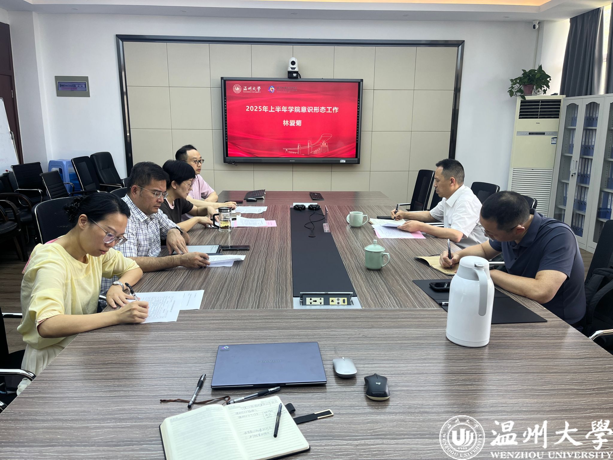 学院党总支书记林爱菊作2025年上半年学院意识形态工作报告。报告全面通报了当前意识形态工作的总体情况,深入分析了学院意识形态工作重难点问题,并明确了下一阶段目标任务。会议指出,学院将严格落实意识形态工作责任制,层层压实责任链条,守牢意识形态主阵地,切实做到守土有责、守土尽责。