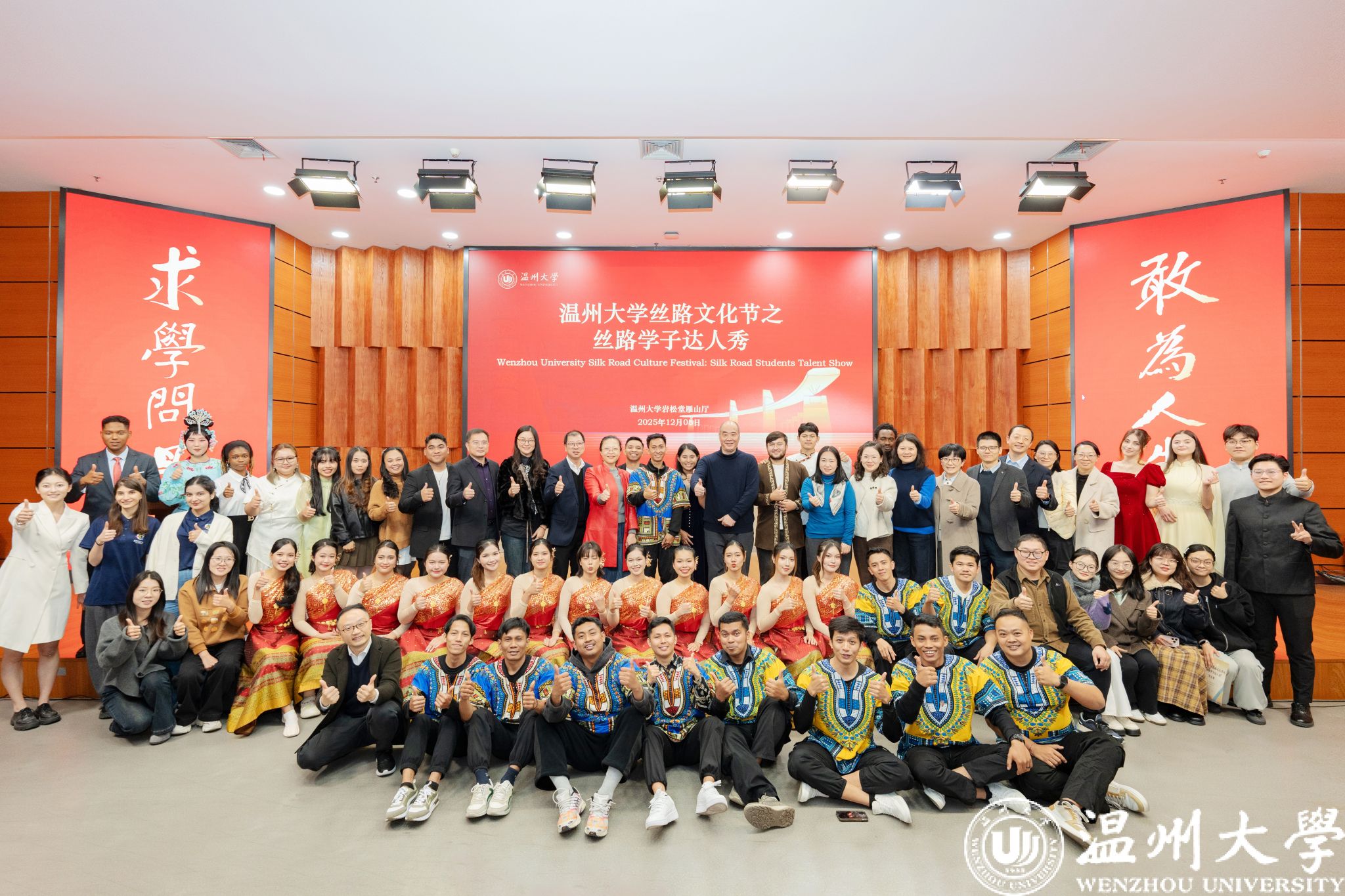 12月5日下午,beat365中文官方网站首届丝路文化节之“丝路学子达人秀”在南校区岩松堂雁山厅成功举办。浙江省教育厅国际处一级调研员杜健,华中科技大学、中国传媒大学、浙江大学、浙江工业大学等10所兄弟高校国际教育领域专家领导,beat365中文官方网站党委委员、副校长王舜以及相关部门学院负责人出席活动。来自印度尼西亚、尼泊尔、尼日利亚、泰国、越南、土库曼斯坦等多个国家的留学生们,以艺术为桥,以文化为媒,共同呈现了一场跨越国界、融汇多元的艺术盛宴。