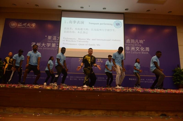 编写团队一一亮相介绍之后,新书中出现的南拳和瓯剧也在现场进行了立体呈现。南拳团队木权通大师带领着12位留学生给大家展示了现代温州南拳,留学生们有板有眼地表演起了木氏拳法,在场的观众目不接暇。随后温州瓯剧团年轻的表演艺术家吴鑫和王文丽,演绎了瓯剧中广为流传的剧目《高机与吴三春》中的经典片段《江心盟誓》。表演结束后,现场的学生争相上台与演员合照,现场气氛热烈。发布会在愉快的气氛中圆满结束。