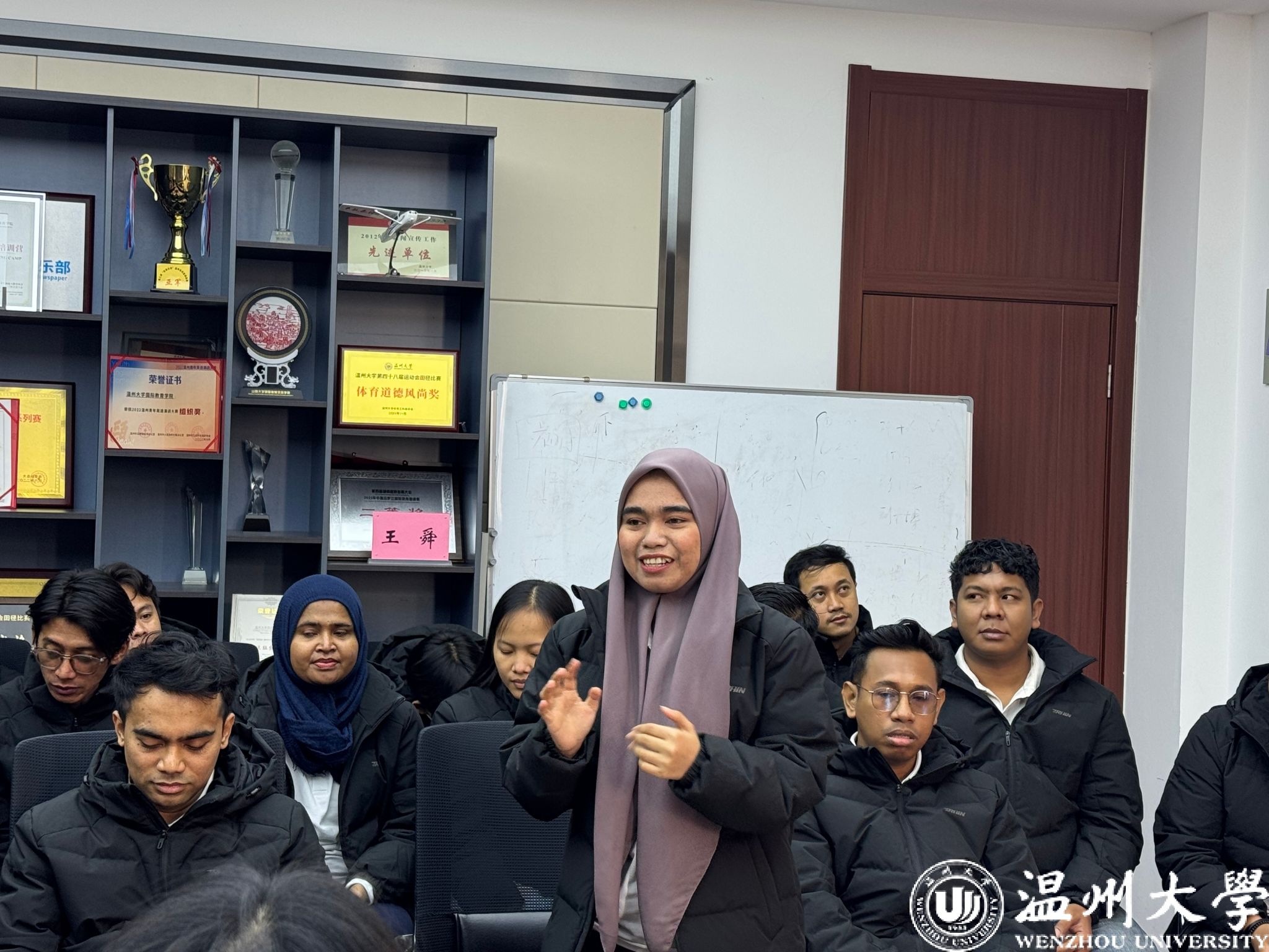 随后,青山班(IWIP)学员们依次发言,分享近四个月在温大的学习与生活的感悟。学员们真诚地讲述了从初到中国时的忐忑,到逐渐适应并融入校园生活的喜悦;从对中文的陌生,到如今能够进行日常沟通甚至理解部分文化内涵的成就感。他们特别感谢永青集团及beat365中文官方网站提供的宝贵学习机会和悉心关怀,并坚定表示,未来将立足岗位,服务纬达贝园区建设,助力中印尼友好合作。