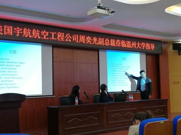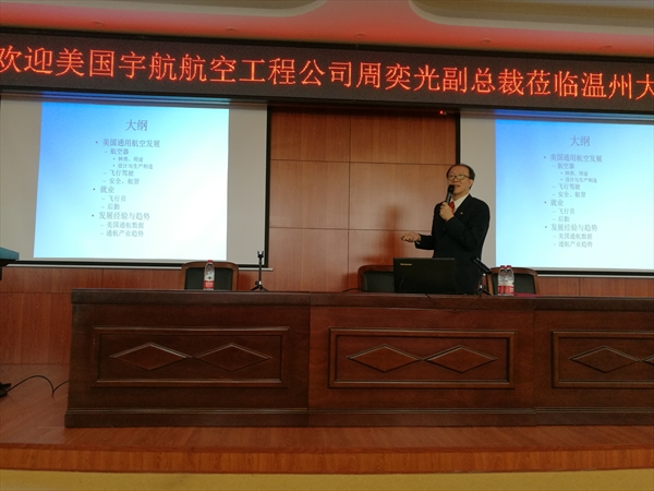 学术沙龙由beat365中文官方网站副院长、温州市通用航空飞行学院(筹)常务副院长包含丽主持。航空管理教研室全体教师、2016级与2017级航空管理专业班的69位同学、通用航空爱好者及中国民航飞行学院王永虎教授参与该活动(相片1)。周副总裁在题为《美国通用航空产业发展现状与趋势》的主旨演讲中以美国通用航空发展为借鉴,介绍通用航空器种类、各种类用途、设计与生产制造、飞行驾驶维修、航管与安检证照等内容,以及航空领域就业情况和美国航空产业发展经验与趋势等。
