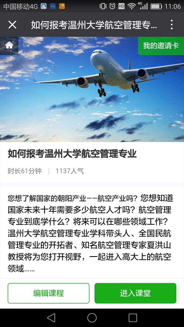 夏洪山教授用事实举例,用数据说话,在线向大家详细地介绍了国内外民航发展情况、工商管理(航空管理方向)专业就业前景、课程设置等问题。他表示未来20年世界民航运输市场亚太区将持续增长,而亚太区的热点是中国。预估2030年,我国民航运输市场规模将达到全世界第一。提及航空管理专业学生未来的就业前景,夏洪山教授有信心地告诉家长朋友们:“我们的人才培养就业导向明确,未来,这批航空人才将主要在航空公司、民航机场、通航机场、航空管理部门及其它国内外航空企事业单位担任运行、规划或管理等工作,他们将成为通航产业腾飞时期的践行者和领跑者。而且单是浙江省通用机场发展规划就计划到2020年将新建、改建通用机场达30-40个。学生就业前景广阔,前途无量。”