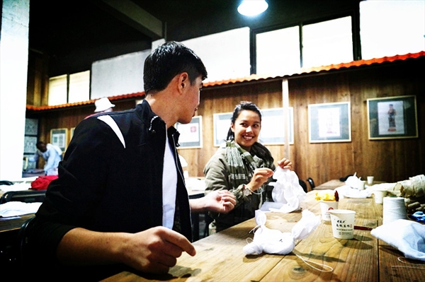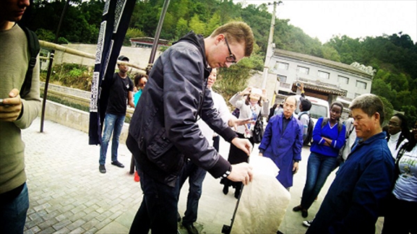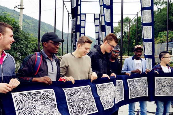 在浸染和晾晒工序后,留学生们终于看见了自己成品的样子,拥有了属于自己的第一份中国时间之蓝。