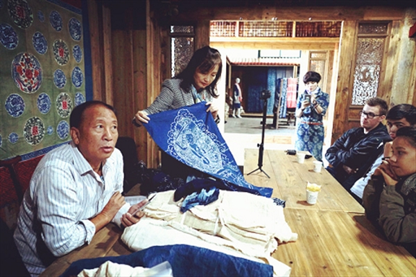 温州市采成蓝夹缬博物馆是我国首个由非遗传承人创办的蓝夹缬博物馆,也是首个由农民合作社支持创办的国家级非遗项目博物馆。2011年6月,瑞安蓝夹缬技艺被列入第三批国家级非物质文化遗产保护名录。2014年,该馆被评为温州市第三批非物质文化遗产蓝夹缬技艺传承基地。而在11月4日这天,这一座代表着民俗与匠心的博物馆又担起了一份新责任:成为了beat365中文官方网站海外留学生实习基地。