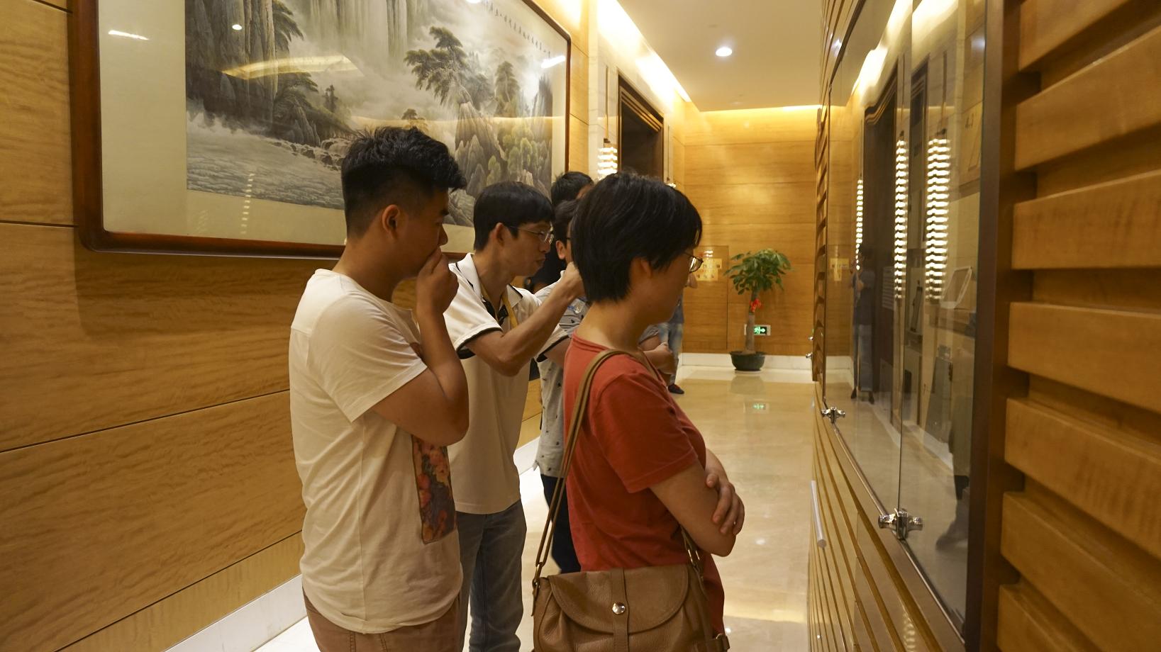 图为两岸项目学生参观宸鸿公司展示厅