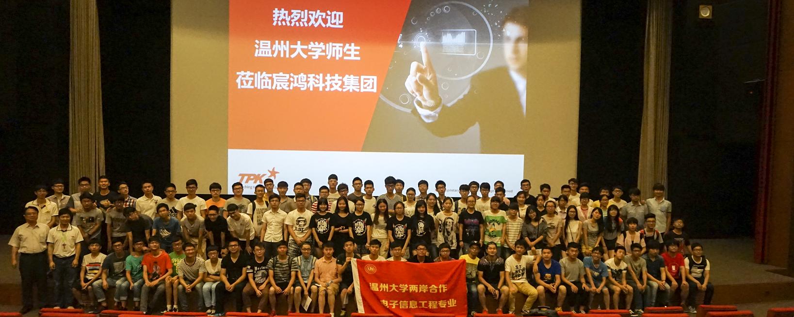 图为两岸项目学生在宸鸿公司合影