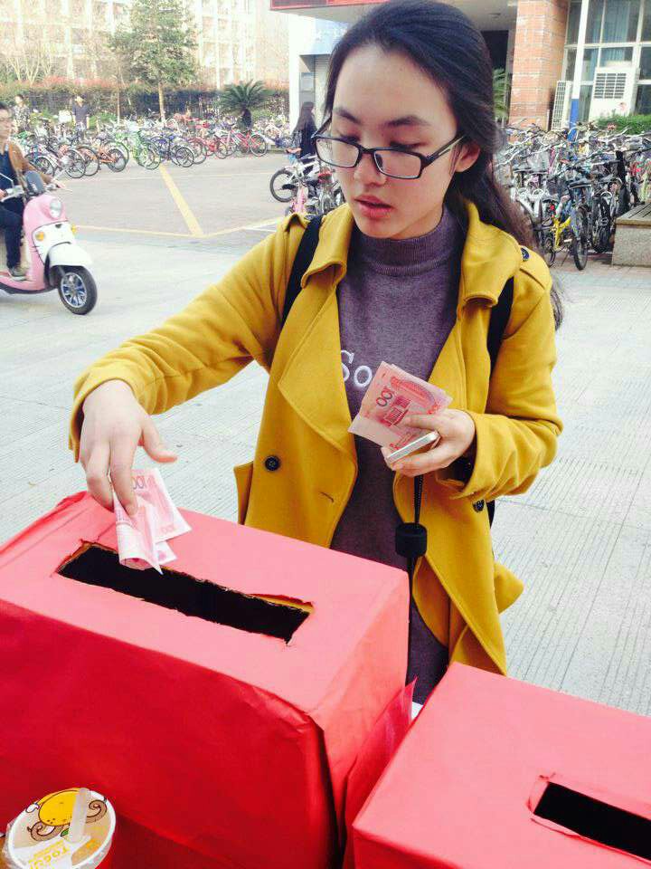 在核实情况后,国际合作学院青年志愿者协会在温大国际合作学院、超豪学区、溯初学区组织发起爱心募捐活动,倡议全体师生伸出援助之手,慷慨解囊相助,帮助夕夕及她的家人度过难关。涓滴之水成海洋,颗颗爱心变希望,此次募捐共募集到7154.5元(所筹善款在三个筹款区都已张贴公示),青协志愿者们并将尽快将善款交到陈若夕父母的手中,祝愿她能早日康复!