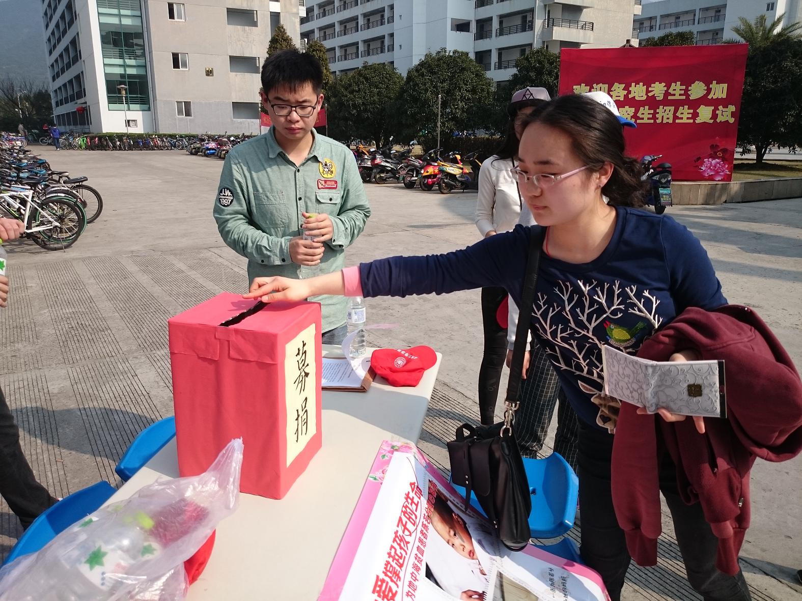 图为beat365官网青协开展募捐活动 徐崇洁摄