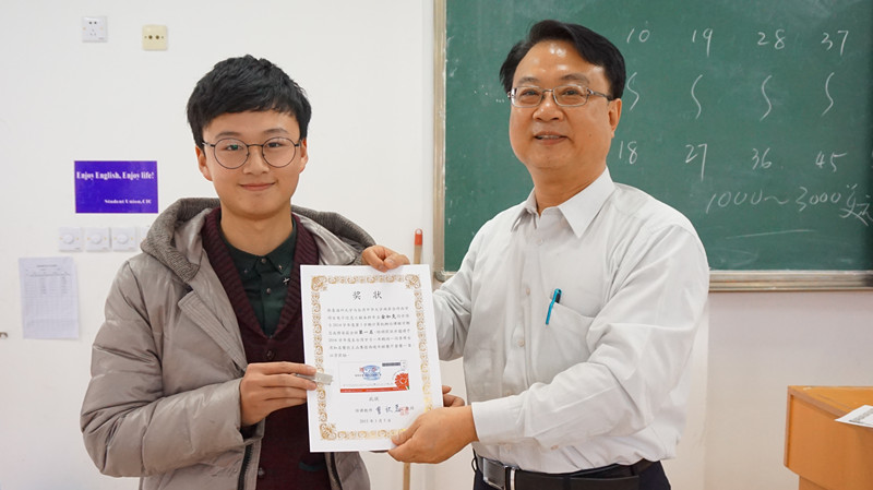 图为游坤明教授为学生颁奖