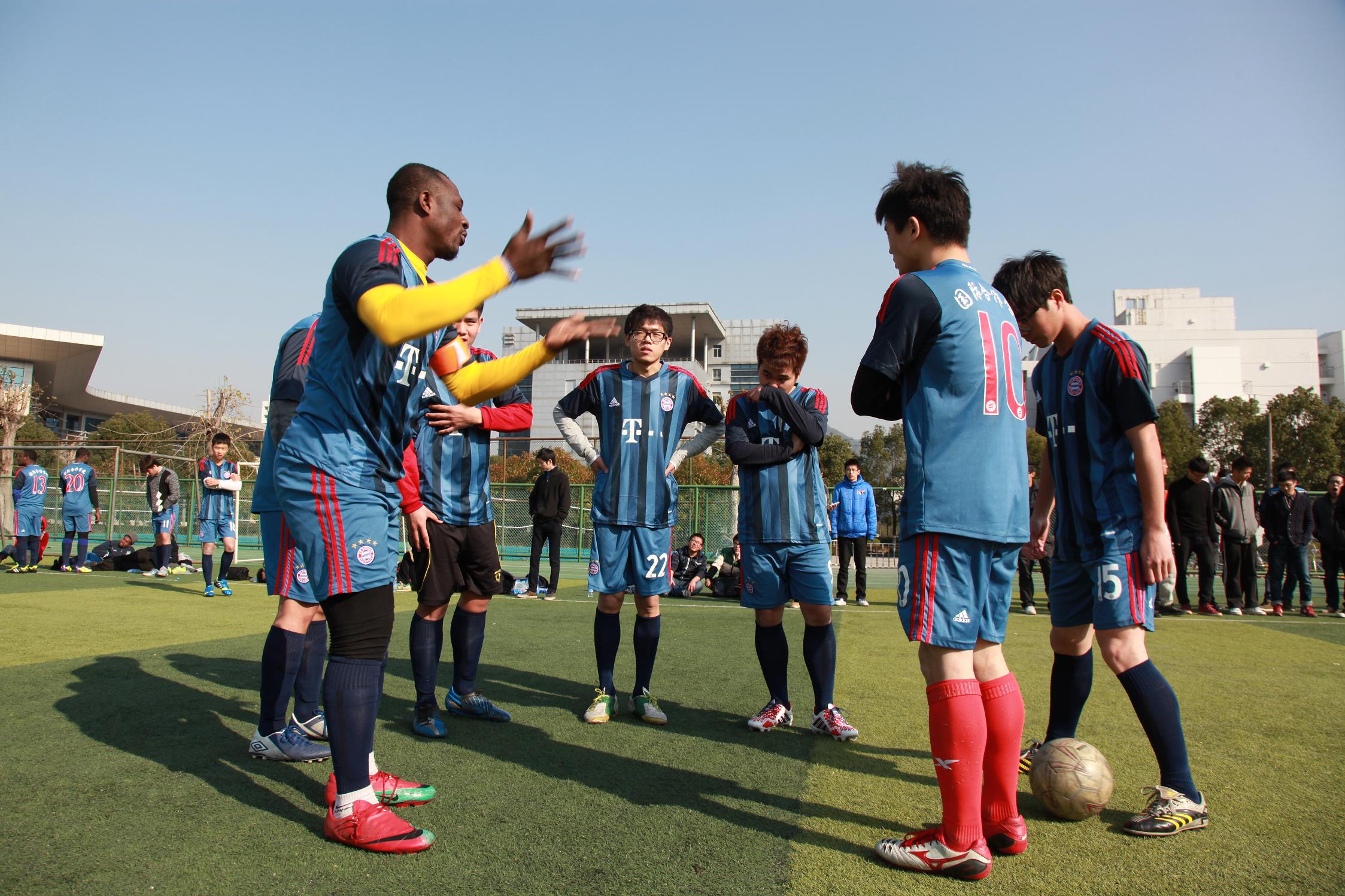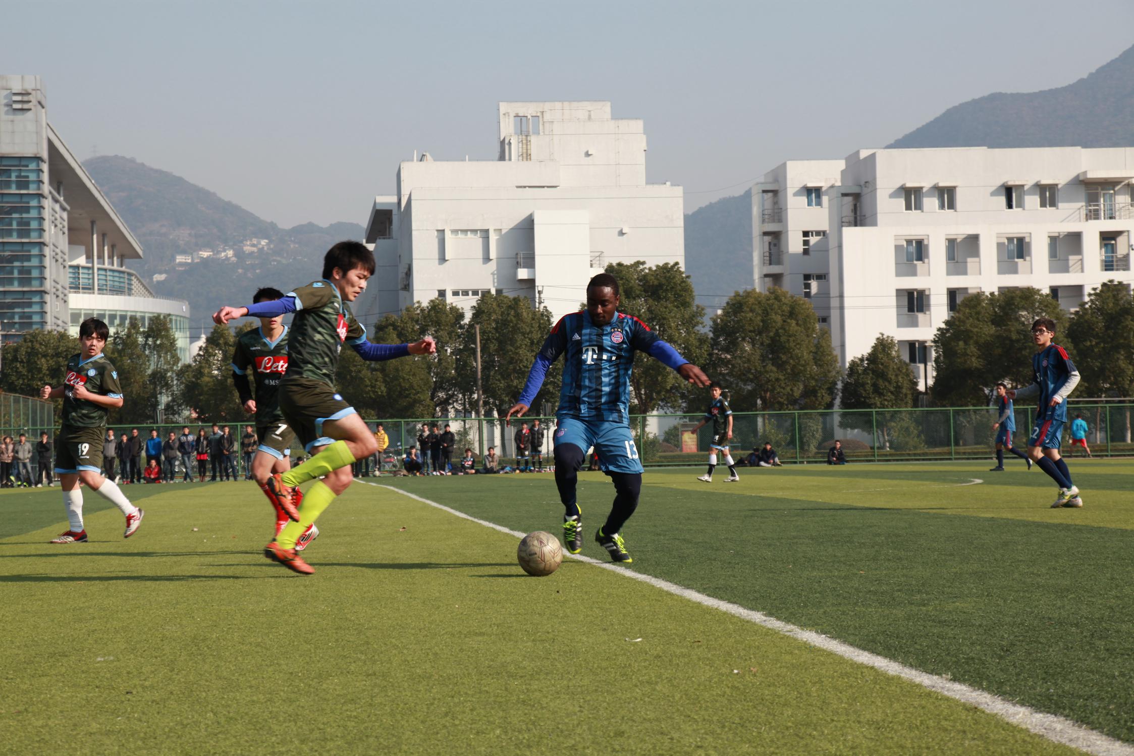 beat365中文官方网站2013年“金秋杯”足球赛决赛于12月末在北校区足球场举行。比赛在国际合作学院与瓯江学院之间展开,两院队伍都是经过激烈角逐挺进决赛。国际合作学院的“联合国足球队”由中国、泰国、尼日利亚、加纳等国家学生组成,赛场旁围满了前来观战的球迷,全场热情高涨。