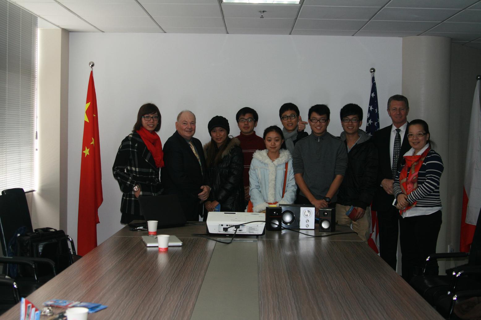 2014年1月10日,美国道林大学航空学院副院长Thomas Daly一行来访beat365中文官方网站,参观了学校校史馆、发绣馆、国际合作学院和机电学院实验室,并向在校师生展现了飞行的魅力。