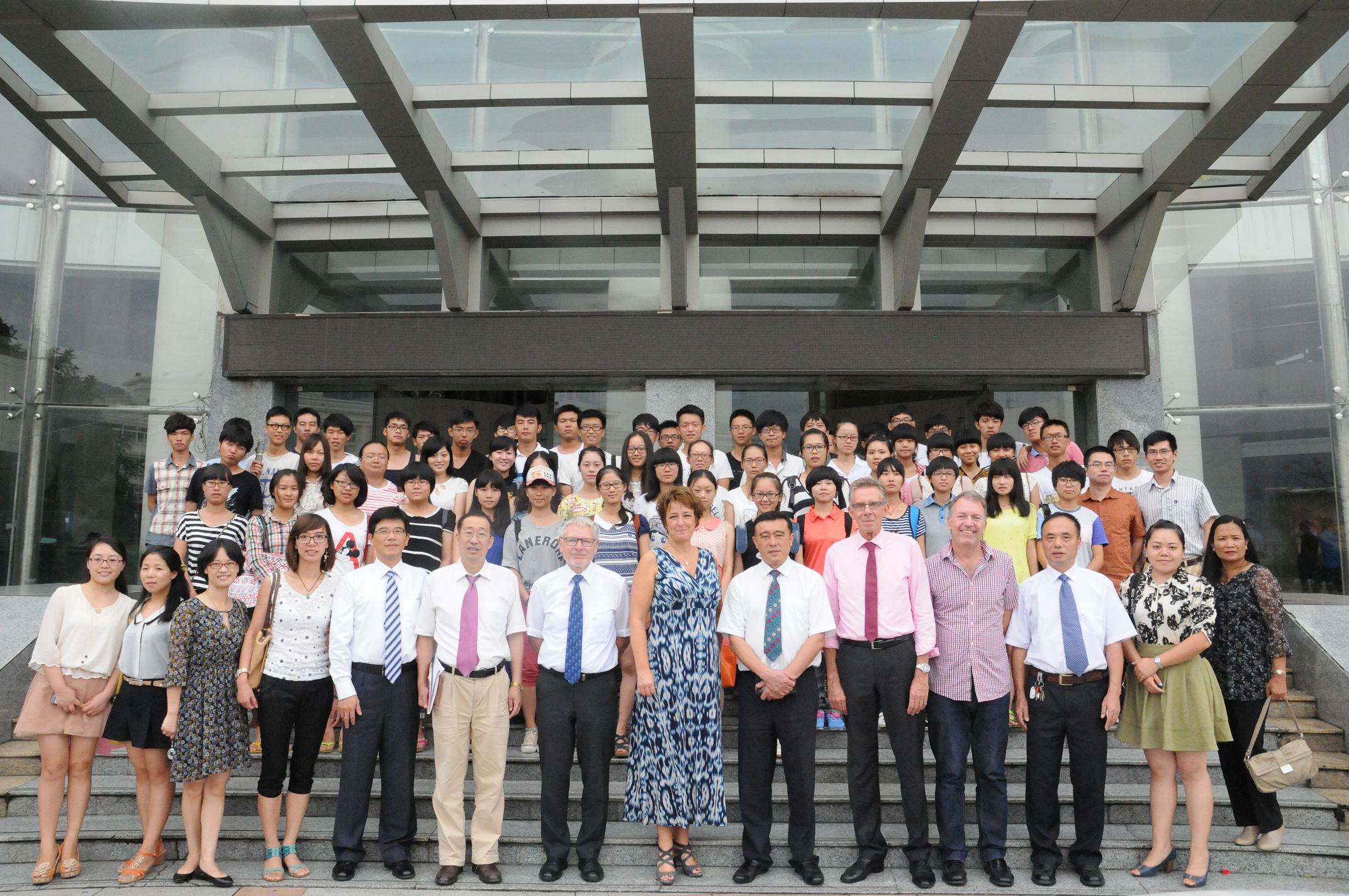 开学典礼在热烈、隆重、欢快的气氛中结束。典礼结束后各位领导、来宾还与中丹合作项目的新生一起合影留念。