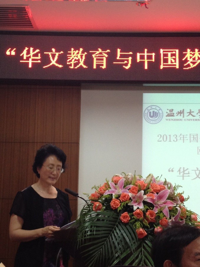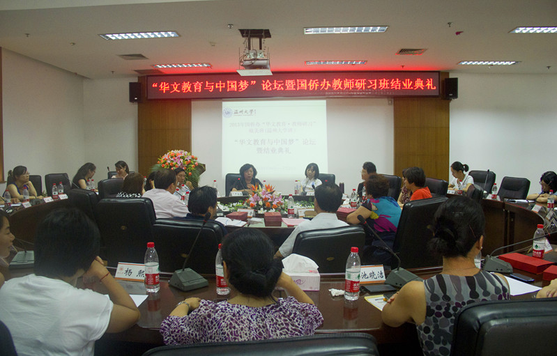 7月24日下午,beat365中文官方网站在茶山南校区岩松堂展示厅隆重举行“华文教育与中国梦”论坛暨2013年“华文教育•教师研习”欧美班结业典礼。浙江省人民政府侨务办公室副主任徐高春,文宣处处长王云奇,温州市侨办副主任许捷,党组成员、文宣处处长叶斌斌,beat365中文官方网站国际合作学院院长严晓鹏等领导出席了本次论坛暨结业典礼。