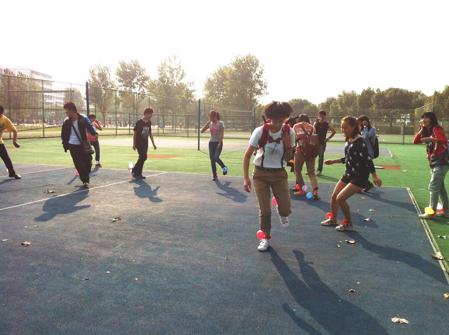 首先进行的是自行车慢行活动,与以往的全力加速不同,这次比赛考验的是大家的定力和耐心,车辆的前进方向呈S形,十分逗趣。与此同时,篮球场内的参赛者们正在进行接力赛前的热身运动。比赛开始后,裁判一声令下,各队奋力向前奔跑,默契的配合体现了良好的协作精神;集体跳绳的竞争可谓异常激烈,几个班级难决胜负;激动人心的踩气球项目将气氛调动到了最高点;拉拉队一浪高过一浪的加油呐喊声更是为全场营造了活跃的氛围。各个项目最终产生了优秀团队、优秀个人,学院老师为获奖团队和个人颁发了奖品和奖金。