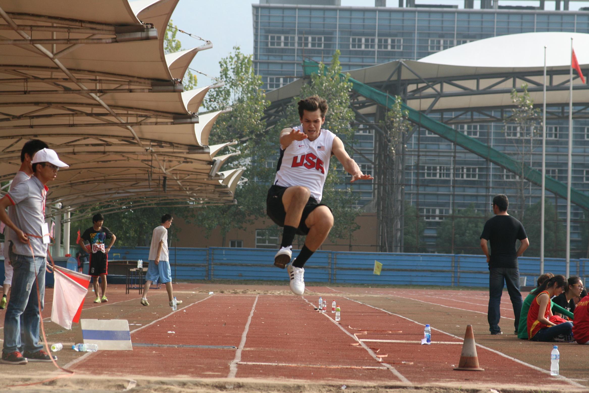 图为留学生参加跳远项目