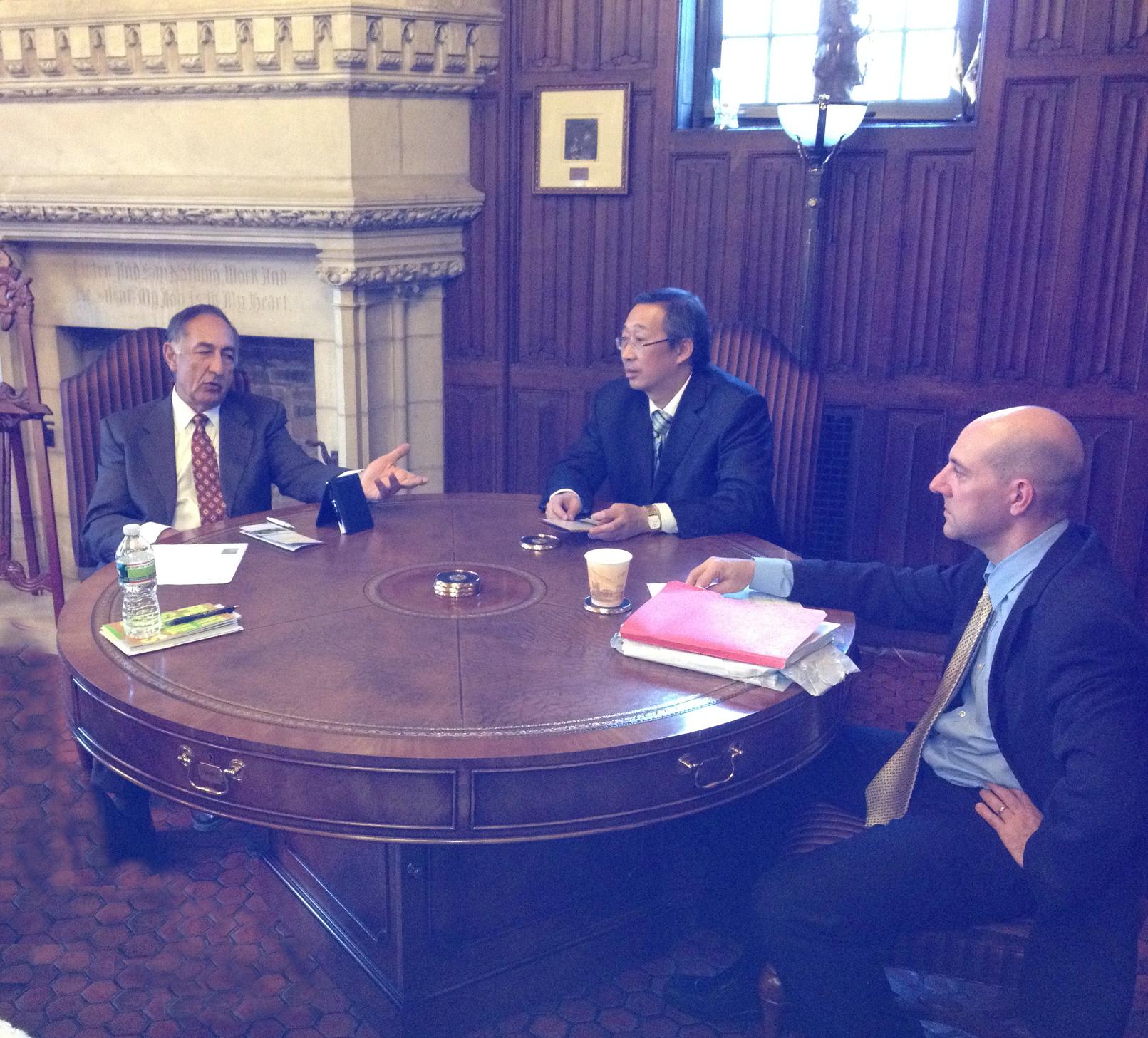 美国肯恩大学校长达伍德·法拉希及学校部分高层管理人员与严院长进行了会谈。严院长向法拉希校长介绍了今年8月底,以两校合作的亚洲研究项目的名义选送到校学习的11名美国留学生在我校的学习生活情况;同时,双方还就亚洲研究项目的学分认证、国际化课程群建设和国际化师资培养等有关问题进行了深入的交流与探讨。