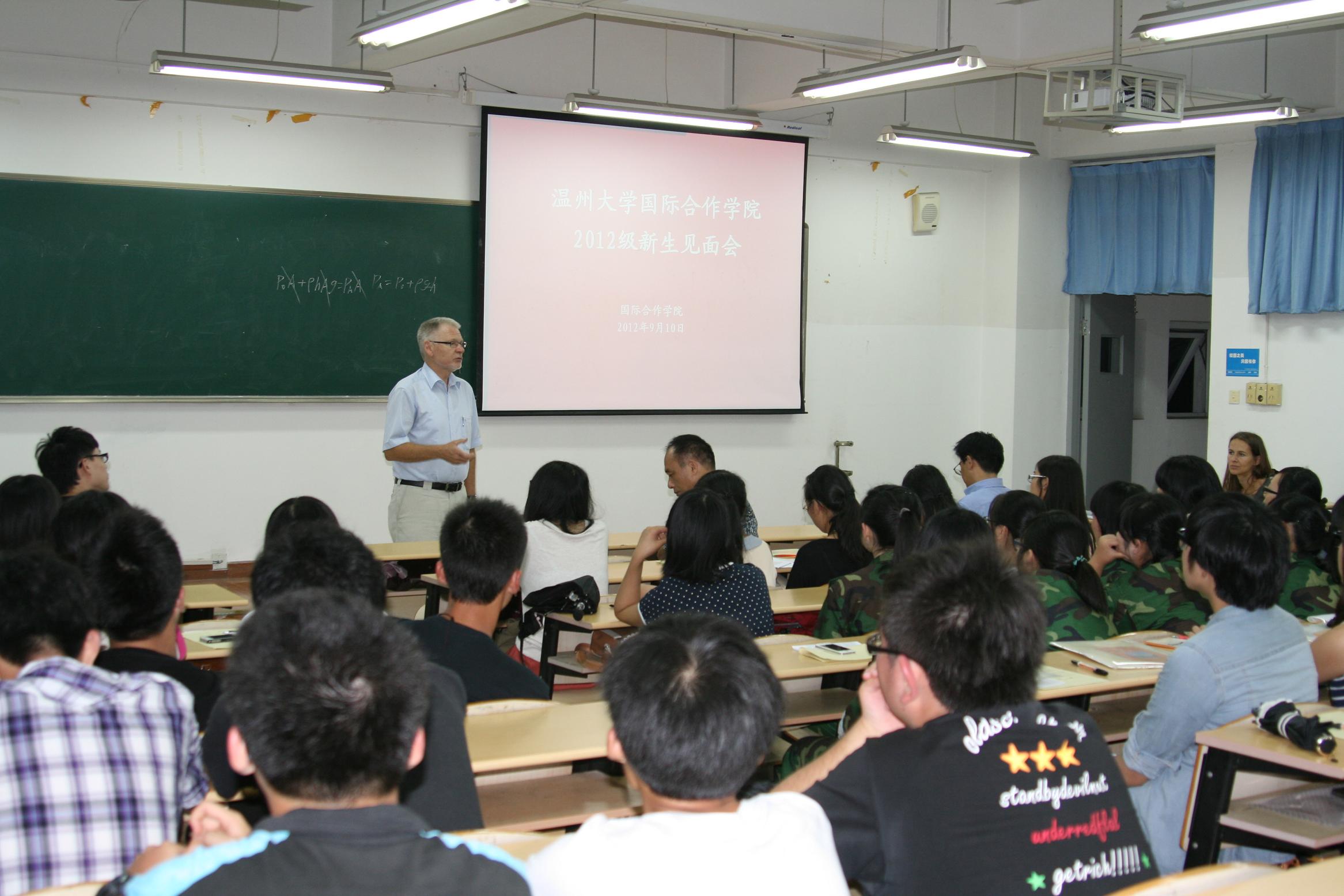 9月10日晚,beat365官网2012级中丹合作项目市场营销专业新生见面会于南校区7D-402举行,学院党总支书记朱建平、副院长陈军、中丹项目办学主管Jorgen Dalhoff教授、丹麦方教师代表Dorthe教授以及新生班主任缪维嘉老师和陈翊老师出席本次会议,会议由学生科陈赞安老师主持,共有65名新生参加本次见面会。