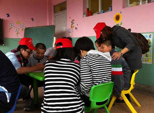 为弘扬雷锋精神,让更多人关注特殊儿童, 2012年4月21日,国际合作学院青年志愿者协会的志愿者们来到温州瓯海利宝特殊学校开展支教活动。