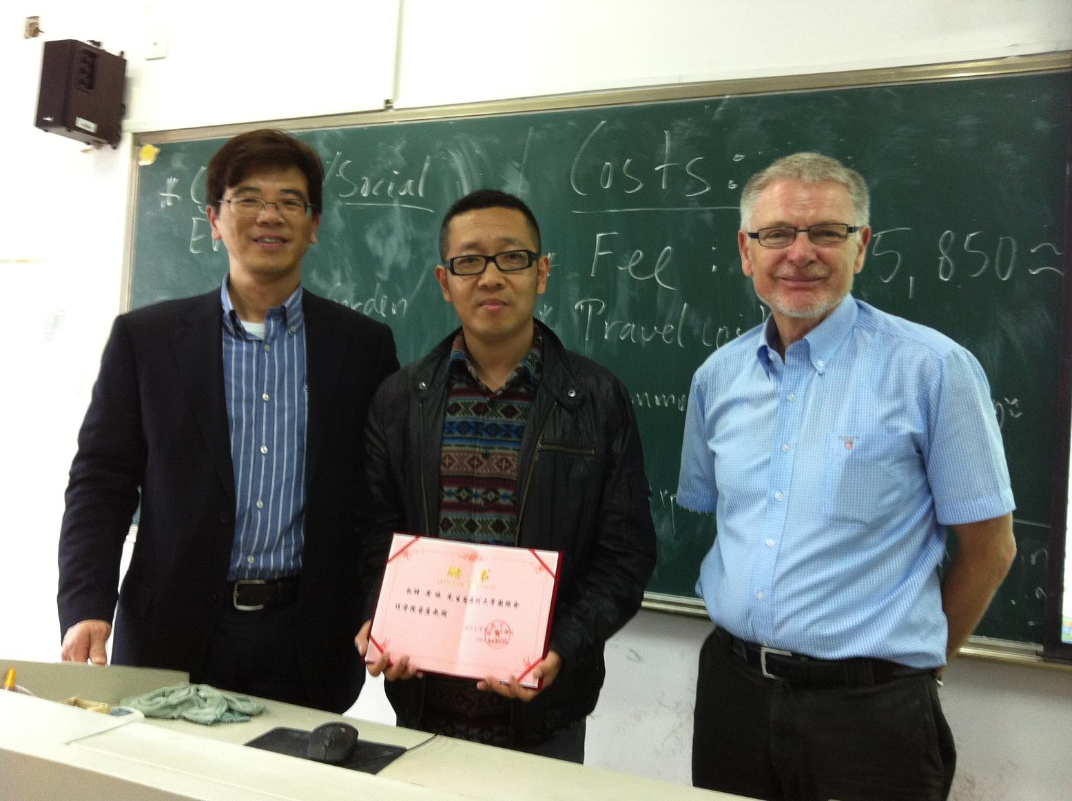 2012年4月11日下午3:30,beat365官网在7D-407教室举行了聘任黄振先生为国际合作学院客座教授的仪式。院长严晓鹏、副院长陈军、中丹合作项目丹方项目经理Jorgen Dalhoff先生参加了聘任仪式。