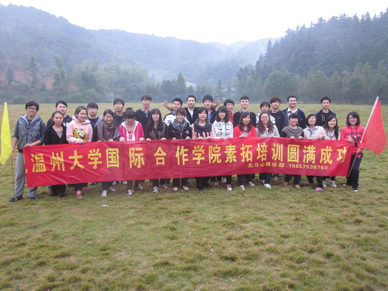 11月27日,本着“磨练意志、陶冶情操、完善人格、熔炼团队”的目的,国际合作学院面向全体学生会成员在温州仰义开展素质拓展活动。本次活动包括热身和游戏两个环节,热身环节 “记名大串烧”,为学生会成员相互认识和了解提供了平台;游戏环节由“信任背摔”、“高空挑战”、“信息驿站”、 “急速60秒”几部分构成,通过一系列的游戏,增强了同学们的团队意识,提高了大家的团队协作能力。此次活动在轻松愉悦的氛围下顺利结束。