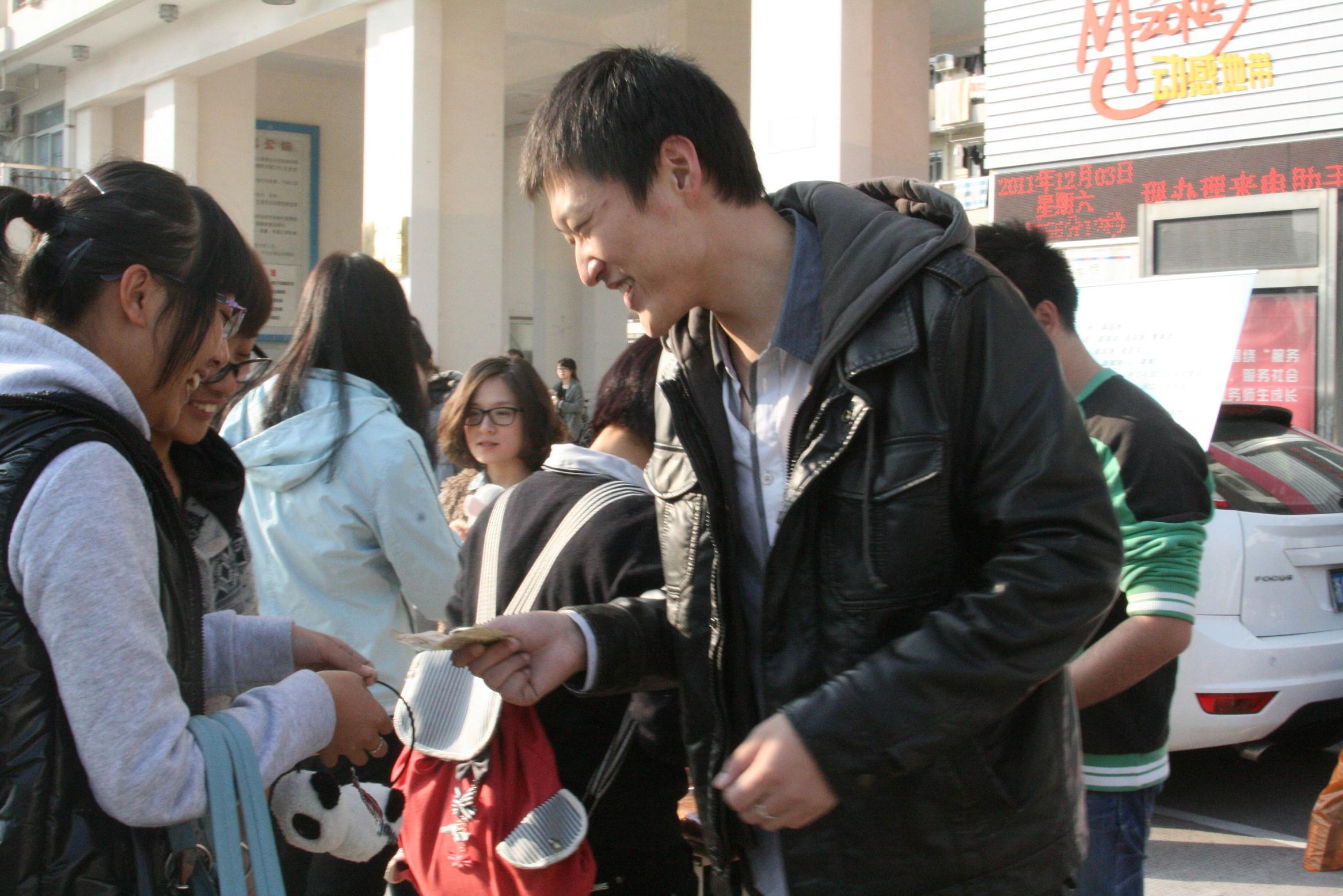 12月3日下午,beat365官网2011年义乌商贸体验队队员在A区生活区举办了义乌小商品校园义卖活动。