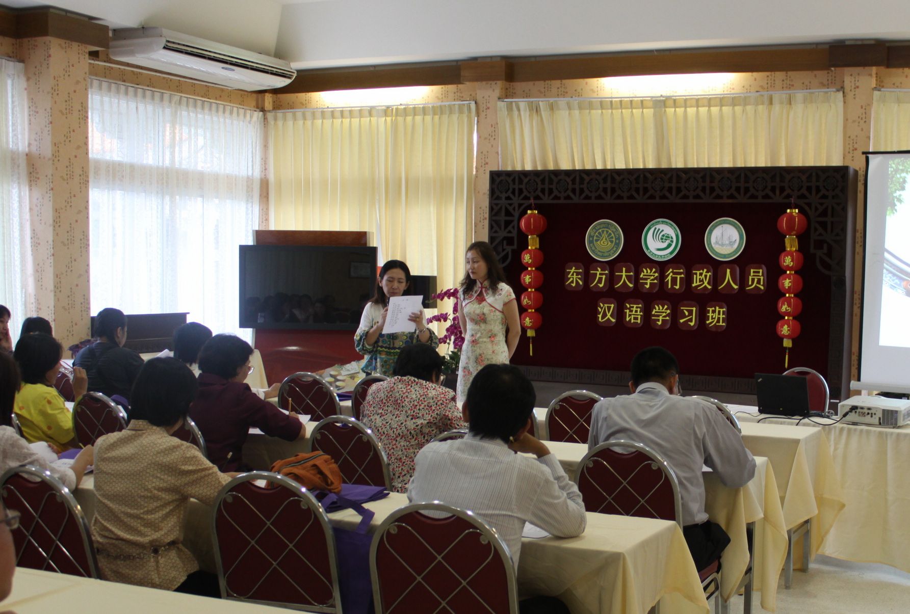 泰国东方大学是泰国排名前5位的综合性大学,国际化水平较高,目前来校学习的中国留学生就有一千多名。学校为了加强对中国留学生的管理和服务,根据实际需要专门针对行政人员开设汉语培训班,由beat365官网外派国际汉语教师张丽丽结合学校工作实际自编教材进行教学。