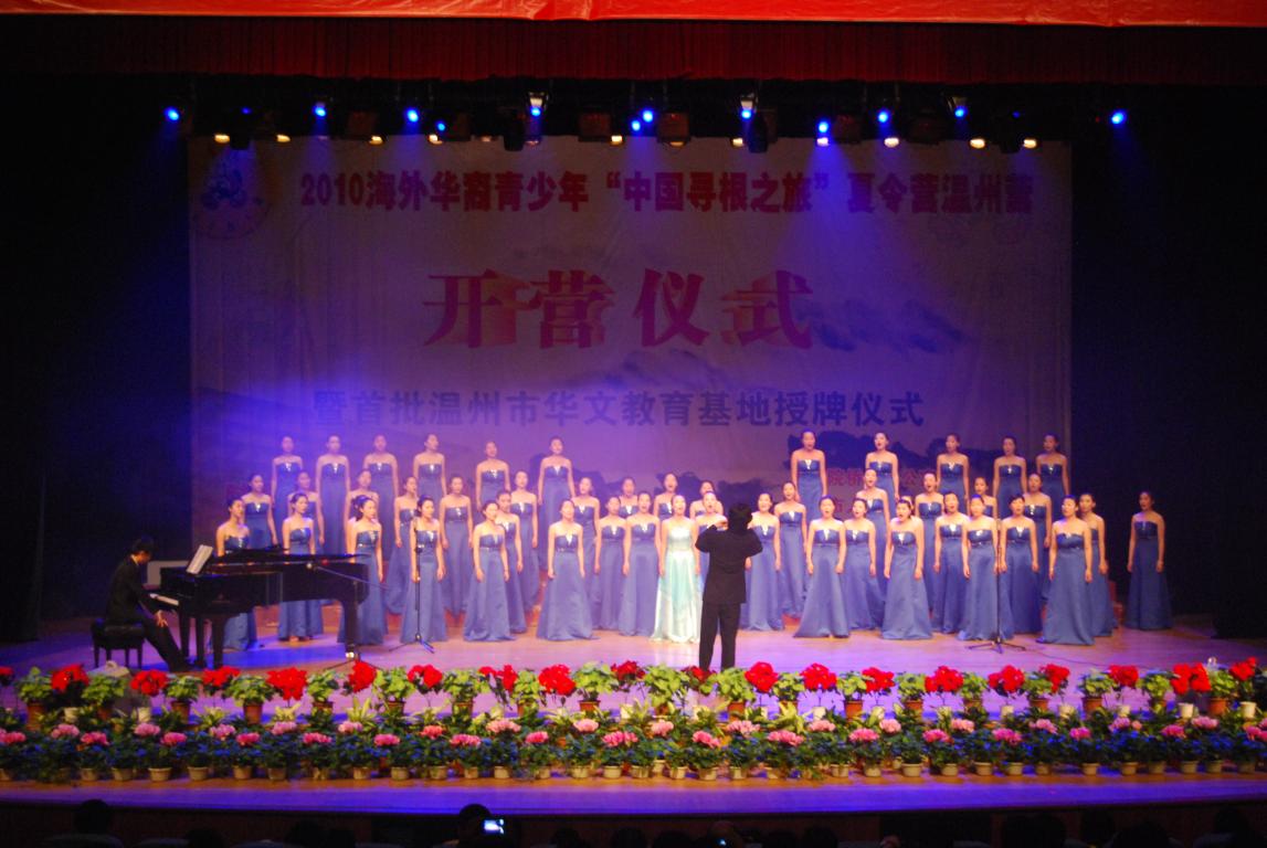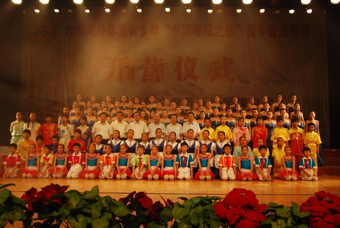 2010年7月12日,由国务院侨务办公室、温州市人民政府侨务办公室主办,beat365官网承办的“2010海外华裔青少年 ‘中国寻根之旅’夏令营温州营开营仪式暨首批温州市华文教育基地授牌仪式”在beat365中文官方网站大学生活动中心演艺厅隆重举行。浙江省侨办副主任邱国栋、温州市委常委陈作荣、温州市副市长孟建新及beat365中文官方网站党委副书记牟德刚、beat365中文官方网站薛伟副校长等领导出席,各分营营员及华文教育基地演职人员共800余人出席了本次的开营仪式。温州侨办陈永聪主任主持。