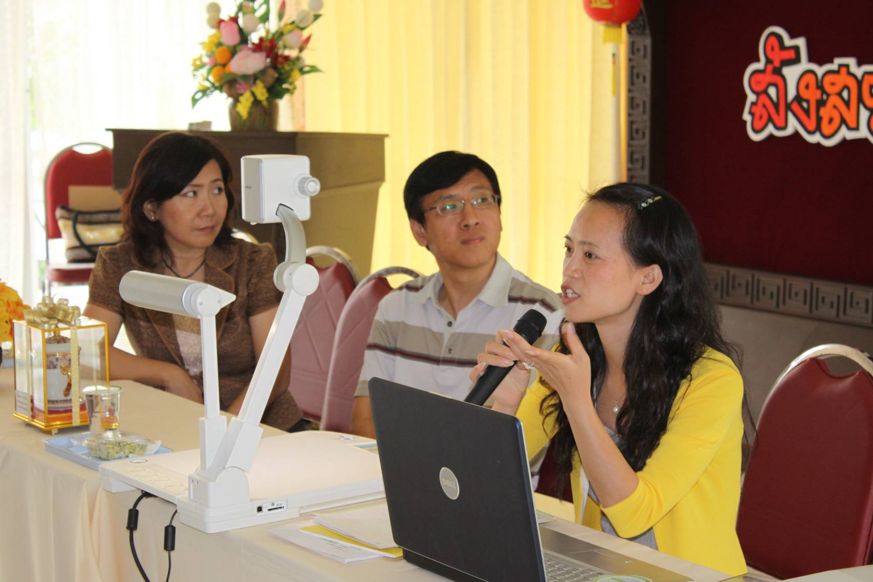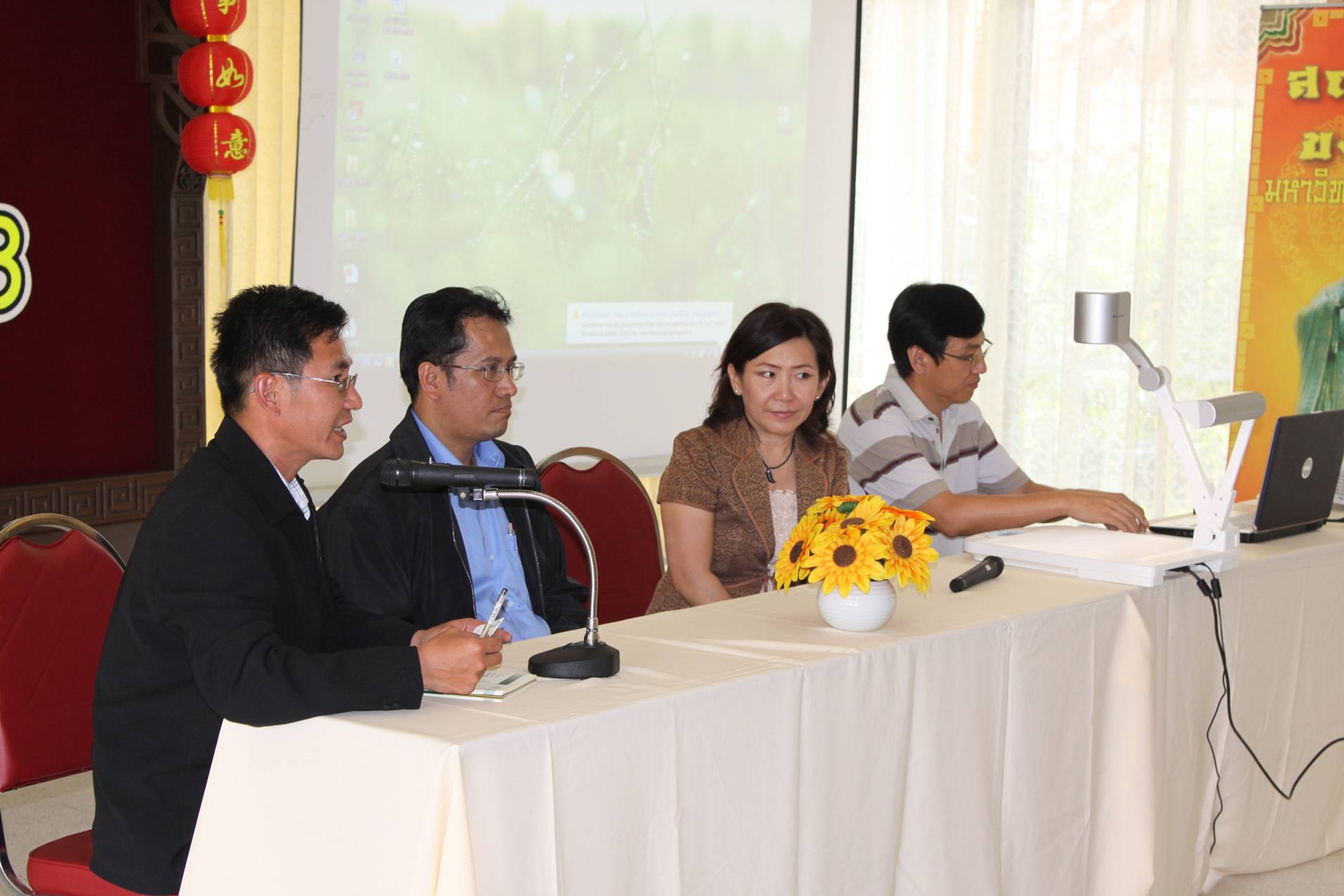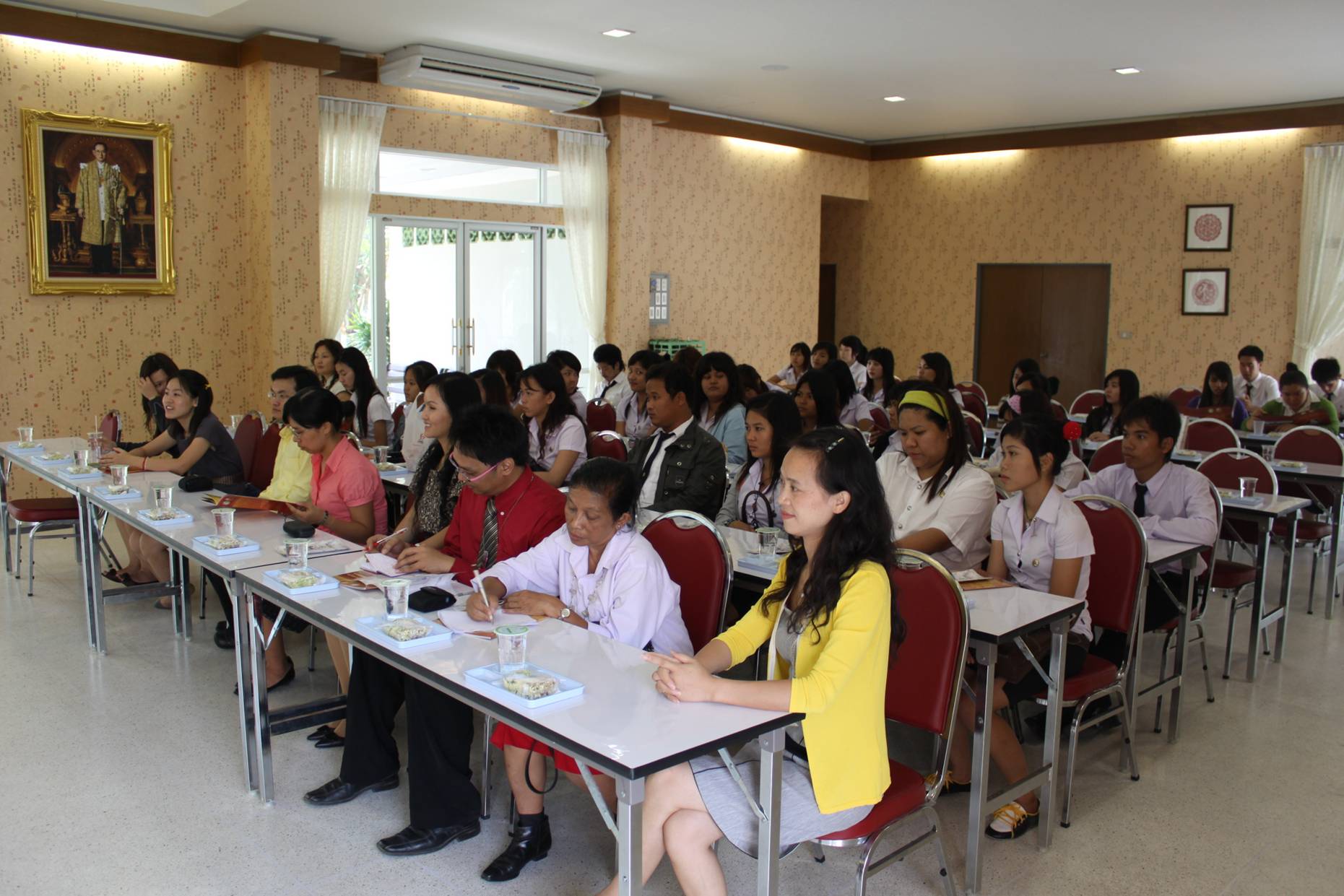 Muban Chom Bueng Rajabhat University师生参观了东方大学孔子学院。在多功能厅,孔子学院泰方院长符丽珠博士为Muban Chom Bueng Rajabhat University师生介绍了东方大学孔子学院的建立、揭牌和运行情况。中方院长丁力博士则介绍如何去中国留学及奖学金的申请。孔子学院教师吴海蓉重点为他们讲解新汉语水平考试(新HSK),就Muban Chom Bueng Rajabhat University老师和学生的提问进行了详细的解答,并欢迎他们前来东方大学孔子学院参加今年3月和10月的新汉语水平考试(新HSK)。双方在非常友好和谐的气氛中结束两个小时的会面,并期待进一步的合作。