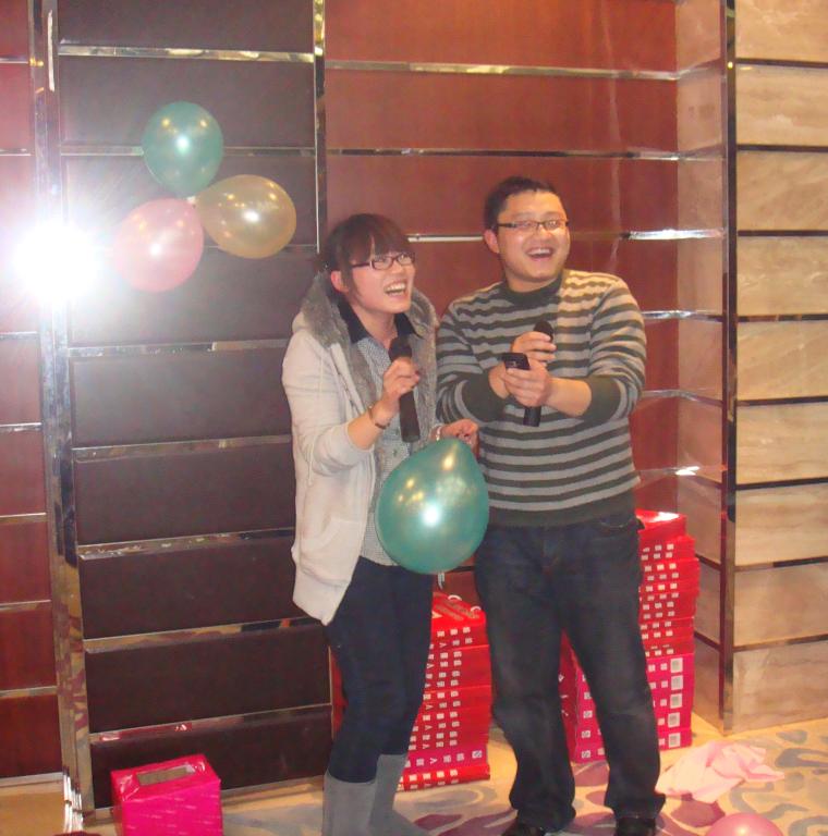 晚宴上,各位老师纷纷一展歌喉,即兴演唱,为大家带来了阵阵欢笑。穿插在歌声和祝福声中的抽奖和互动环节更是博得满堂喝彩。在各位抽奖嘉宾幸运之手的帮助下,学院精心准备的各种奖品在这欢乐的时刻一一送到了各位嘉宾和老师的手中。