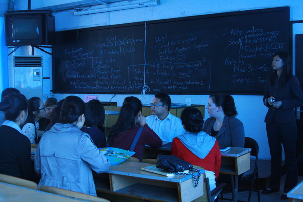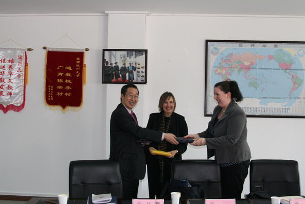 11月3日上午,召开了学院领导见面会,库克大学国际学院院长Wendy Gaylord博士一行、国际合作学院部分院领导和相关人员参加,见面会由院长严晓鹏主持。严晓鹏院长对Wendy Gaylord博士一行的来访表示热烈的欢迎。他说,此次来访对库克项目在温州的可持续发展很有意义,也增强了我们进一步做好工作的信心,同时也希望Wendy Gaylord博士今后对学院的教学和评估能做进一步的指导;陈军副院长介绍了beat365官网库克项目的基本情况,双方就实际工作中存在的问题和困难进行了探讨。见面会结束后,双方互送了礼物并合影留念。接着,Wendy Gaylord博士一行进行了听课,课堂上学生积极发言、气氛极其活跃。随后,召开了留学生说明会,就库克留学事项及奖学金政策做了详细的说明。会后,对学生的提问进行了一一答复。下午,在601会议室与3位外教召开了见面会。