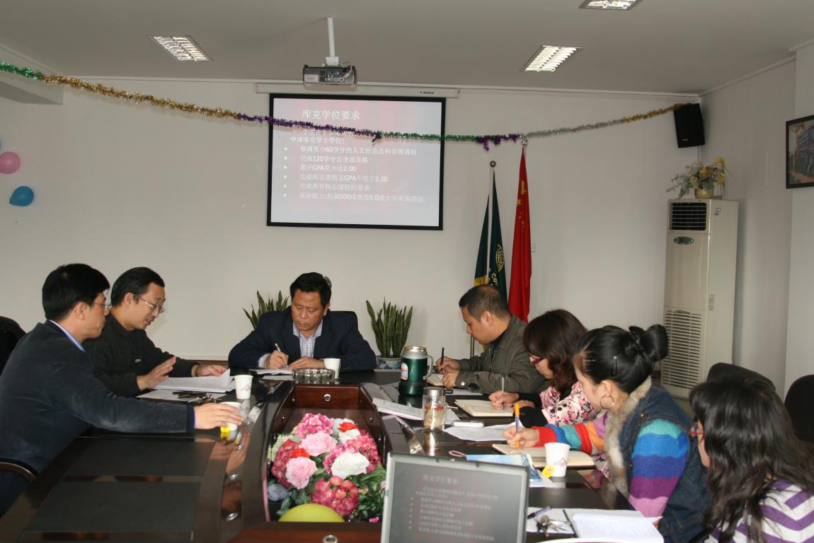 陈福生书记听取了大家的汇报和介绍后,表示国际合作学院在beat365中文官方网站的特殊作用是无法替代的,并对beat365官网多年来所取得的成绩及当前学院开展的各项工作予以了充分肯定。陈书记要求学院党政班子对在“十二五”规划期间学院的目标定位、基本思路、政策措施等进行战略化思考,做好规划和部署工作。陈书记指出,学院要善于总结教学和学生管理经验,健全制度、保证质量、创新服务,扎实做好学生的教育管理工作。突出办学特色,实现学院的国际化发展战略。