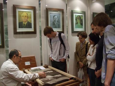 为了让留学生们了解新beat365中文官方网站的发展历史,让他们更加融入这里的生活和学习,2008年6月16日,国际合作学院组织留学生参观了校史博物馆和发绣研究所。