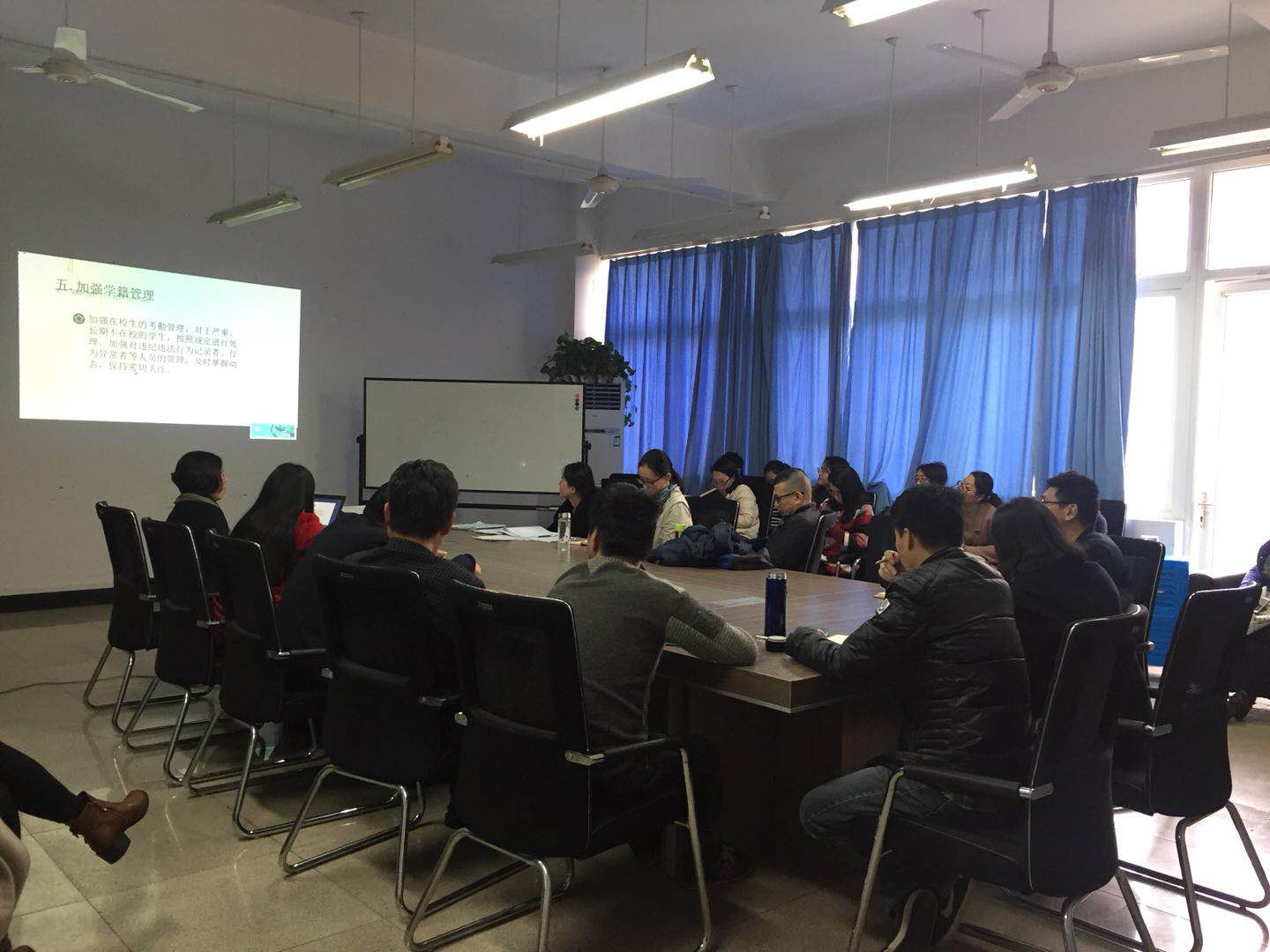 最后,党总支副书记陈文远对班主任辅导员工作及考核问题展开了说明。陈副书记全面总结了学院辅导员、班主任工作取得的成绩,提出了进一步加强和改进辅导员班主任工作的任务与措施。她强调,辅导员、班主任工作作为学校育人工程的重要组织部分,地位重要,作用突出,要明确职责,做实工作。要在工作开展过程中尽职履责,注重细节,将工作落实、落小、落细,确保工作成效。努力提升学校学生工作水平,推动学校科学发展。