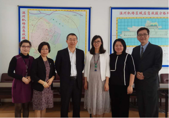 4月13日上午,beat365官网院长叶苗、副院长包含丽、航空管理教研室主任陈宁颖、牛诗渊博士等走访温州机场集团,双方就校企合作共建航空专业实训基地相关事宜进行了洽谈。温州机场集团人力资源部部长杨绍沛、副部长蒋方慈等热情接待了叶苗院长一行。
