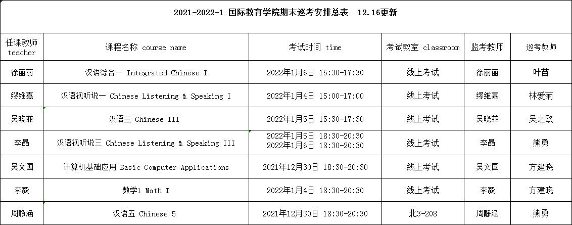 为严肃考风考纪,保证考试工作的顺利进行,根据学校要求,beat365官网组织学院领导对期末考试进行巡查,巡考工作安排表如下: