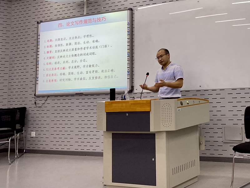 陈斌博士从什么是科研思维、为什么要有科研思维、如何培养科研思维、学术论文写作规范与技巧等方面进行了系统介绍。关于论文写作,陈博士从选题、标题、摘要、关键词、结构、引文与文献、语言表达、注意事项等方面做了深入剖析,并结合个人经历给出了务实中肯的建议。陈斌博士还分享了厦门大学教育研究院的学术惯例和典型经验,如持续了30多年的每周一上午举行的学术例会活动、任课教师为学生答疑释惑的office hour制度等。
