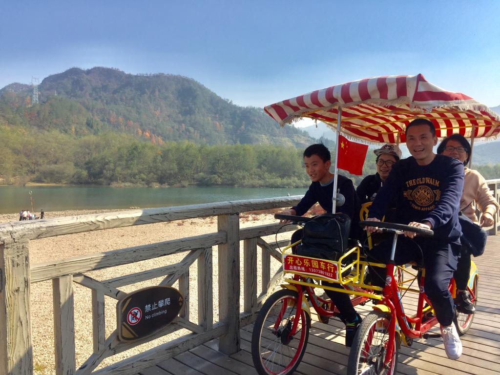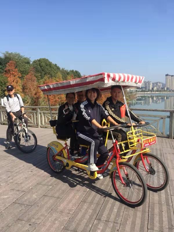 暖暖秋日,满树的金黄覆满仙居绿道,与奇峰异石、幽谷清溪交相辉映。教工们三三两两骑着单车,一边闲话家常,一边欣赏着沿途的风景,缓解了紧张的情绪,释放了工作压力。走完绿道,教工们又来到景星岩景区。景星岩整座山体南北长而东西狭,首尾昂起,象一艘巨型轮船停泊于此。从山顶望去,万山连绵,龙盘虬结,不见首尾。大家漫步在山中,呼吸着山间清新的空气,放飞了心情。