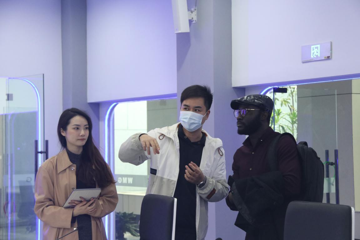 留学生们依次参观了广电一楼新指挥室,演播大厅,转播车等,随后来到301联播演播间以及308虚拟演播室进行参观学习,快点温州APP主播凌子带队讲解,并与留学生们拍摄了短视频。