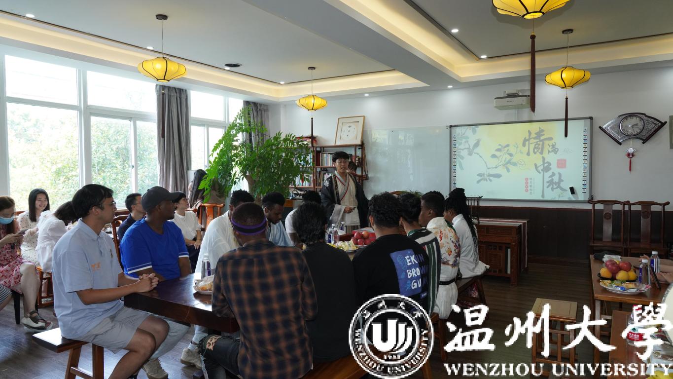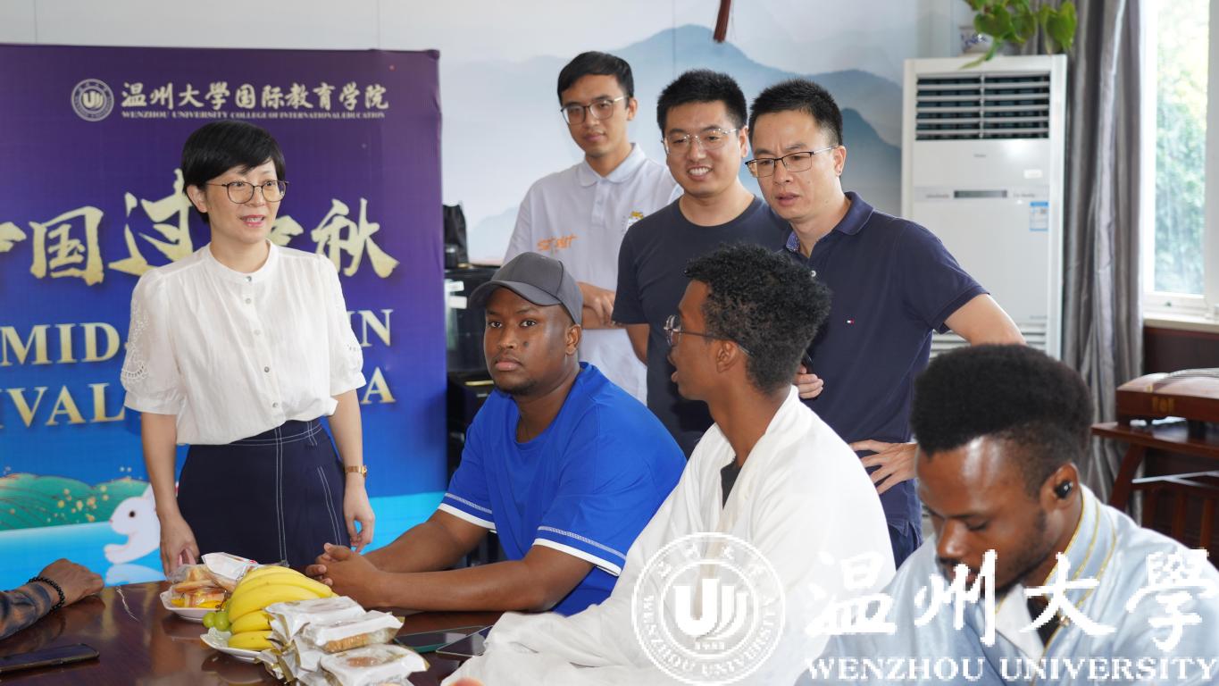 时值中秋,beat365中文官方网站中外师生于9月9日下午齐聚北校区3号楼212教室举行“我在中国过中秋”活动,学院党总支书记林爱菊、副书记方建晓、瓯海公安局出入境管理大队教导员徐毅一行参加了此次活动。