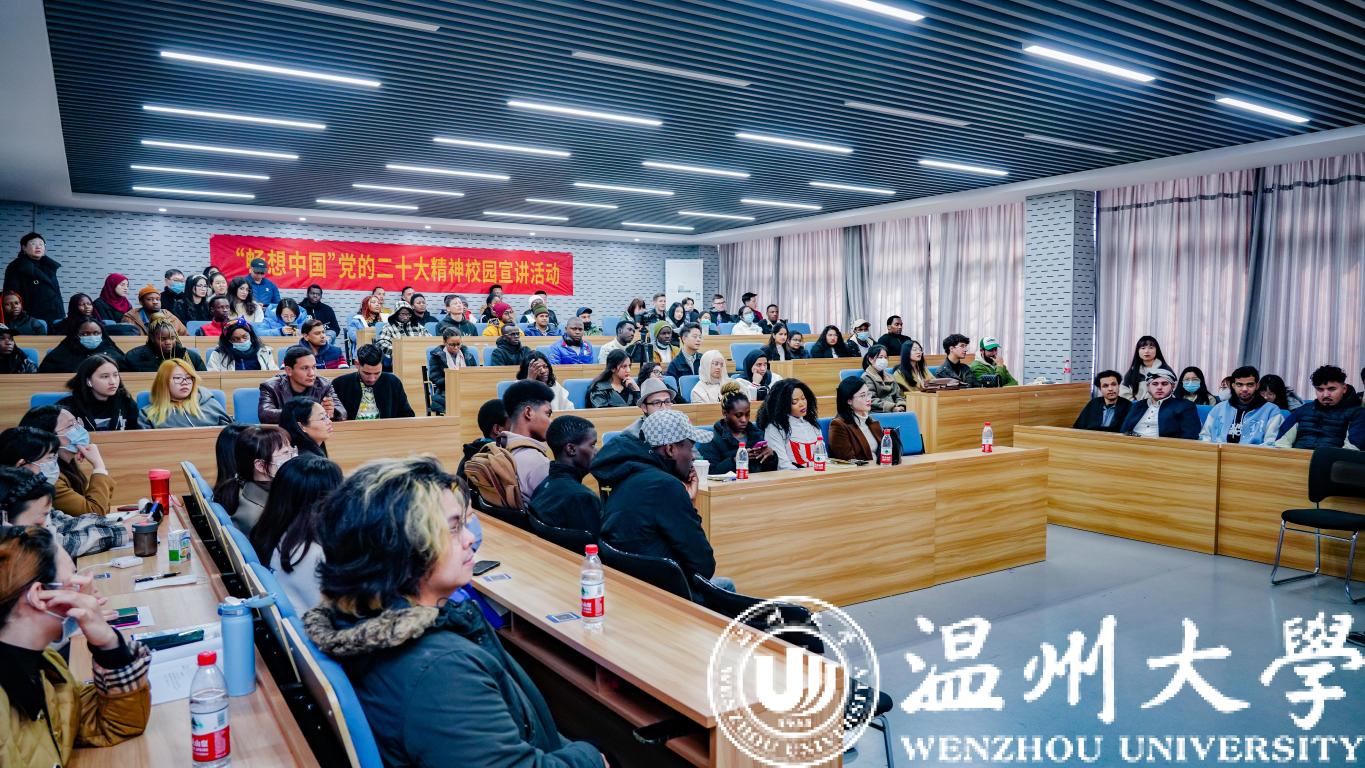 “畅想中国”党的二十大精神校园宣讲团由浙江省教育厅、浙江省高等学校国际学生教育教学指导委员会主办,是省高等学校留学生国情教育的重要组成部分。此次宣讲活动旨在帮助我校留学生深入了解党的二十大精神和新时代中国发展道路、发展现状,增进留学生对中国发展模式的认同和了解。