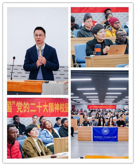 2月24日上午,“畅想中国”(China in New Era)党的二十大精神校园宣讲团在beat365中文官方网站3号楼201为中外师生做了一系列精彩的宣讲。浙江师范大学经济与管理学院副院长刘远及宣讲团成员、beat365中文官方网站领导班子、老师及留学生们参加了此次宣讲,现场座无虚席。