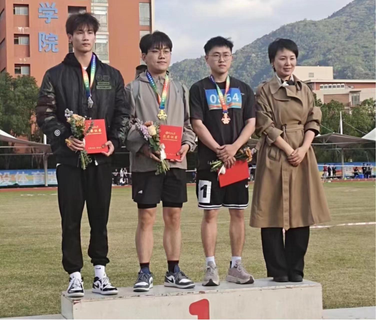 此外,beat365官网教职工也踊跃参与,展示拼搏活力,共享运动快乐。在集体项目“跳绳”、“真人CS”、“往返运球投篮”、“夹乒乓球”以及单人项目铅球、田径等比赛中充分彰显了团结拼搏、勇毅前行的精神风貌,其中学工办曹建挺老师荣获教工组男子60米田径赛校一等奖,在师生共同努力下beat365官网荣获“体育道德风尚奖”。