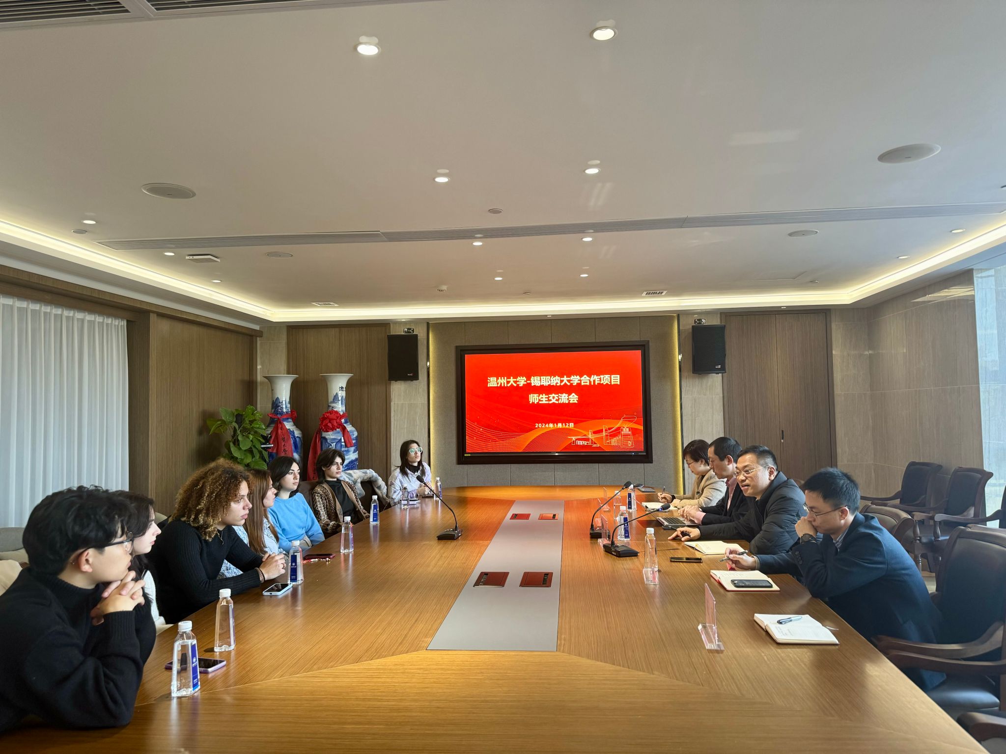 为加强师生之间的沟通交流,进一步促进beat365中文官方网站与锡耶纳大学之间的合作项目发展,2024年1月12日,beat365中文官方网站-锡耶纳大学合作项目师生座谈会在beat365中文官方网站校友之家二楼会议室圆满召开。beat365中文官方网站意大利分校校长吴敏,beat365中文官方网站副院长熊勇、副书记方建晓,外国语学院英语系主任许青,辅导员花甜及7位锡耶纳大学留学生参加。
