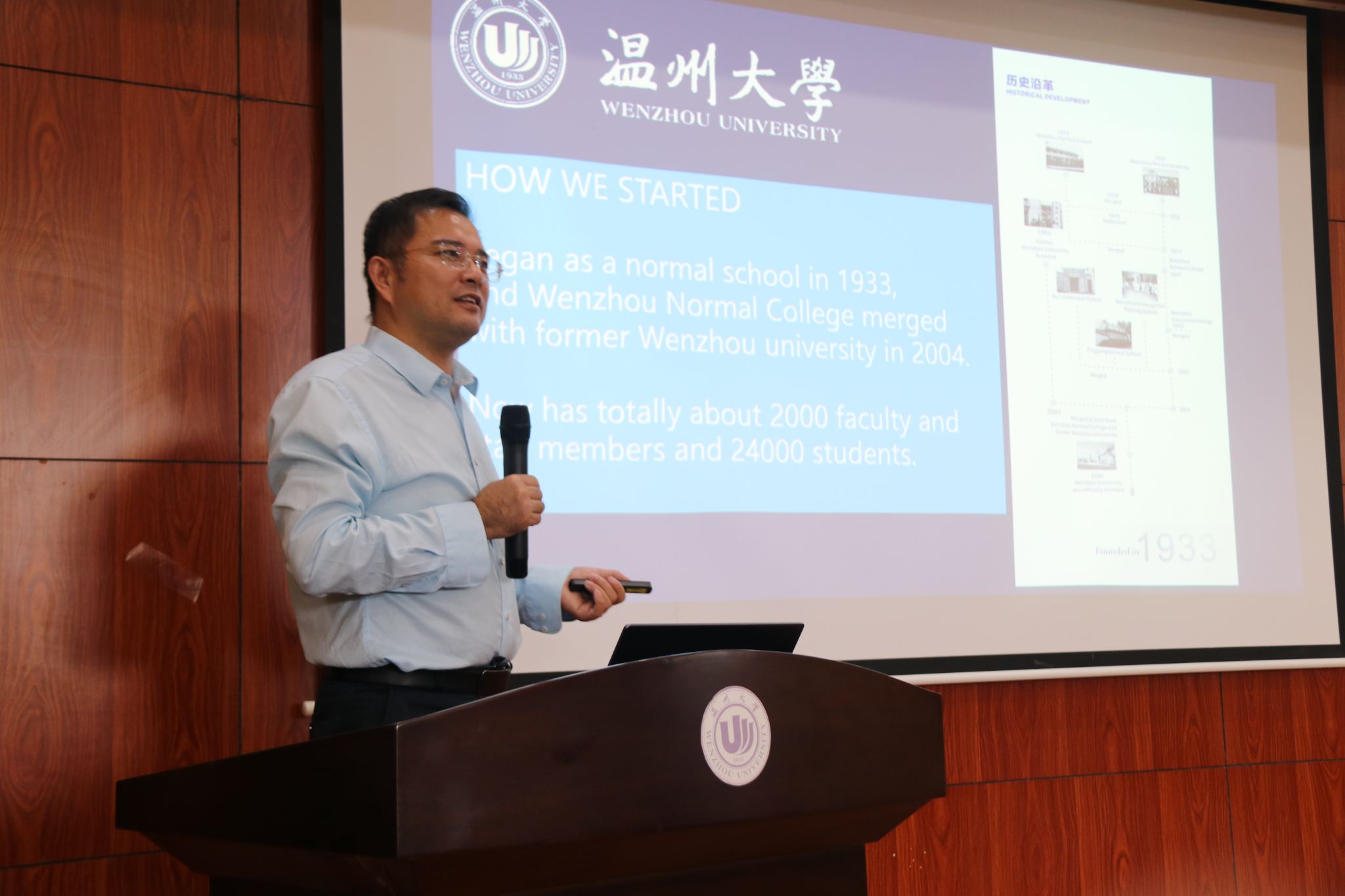beat365中文官方网站学工办曹建挺老师对国际学生活动进行了全面介绍,展示了学院丰富多彩的文化交流和学术实践活动,鼓励新生们积极参与,拓展人际关系,丰富留学生活体验。