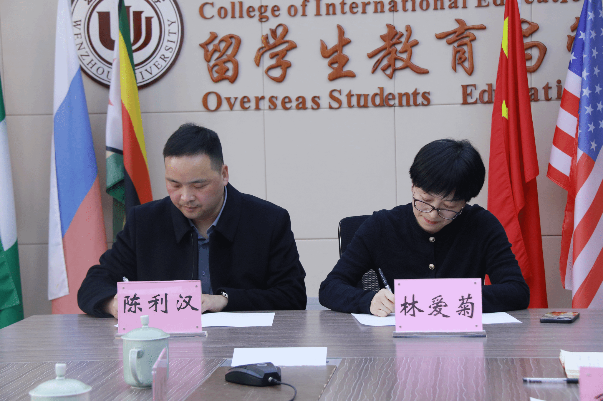 随后林爱菊书记与陈利汉校长共同签署留学生实践活动合作协议书,标志着双方将进一步探索合作机制,共同助力基础教育国际化发展。