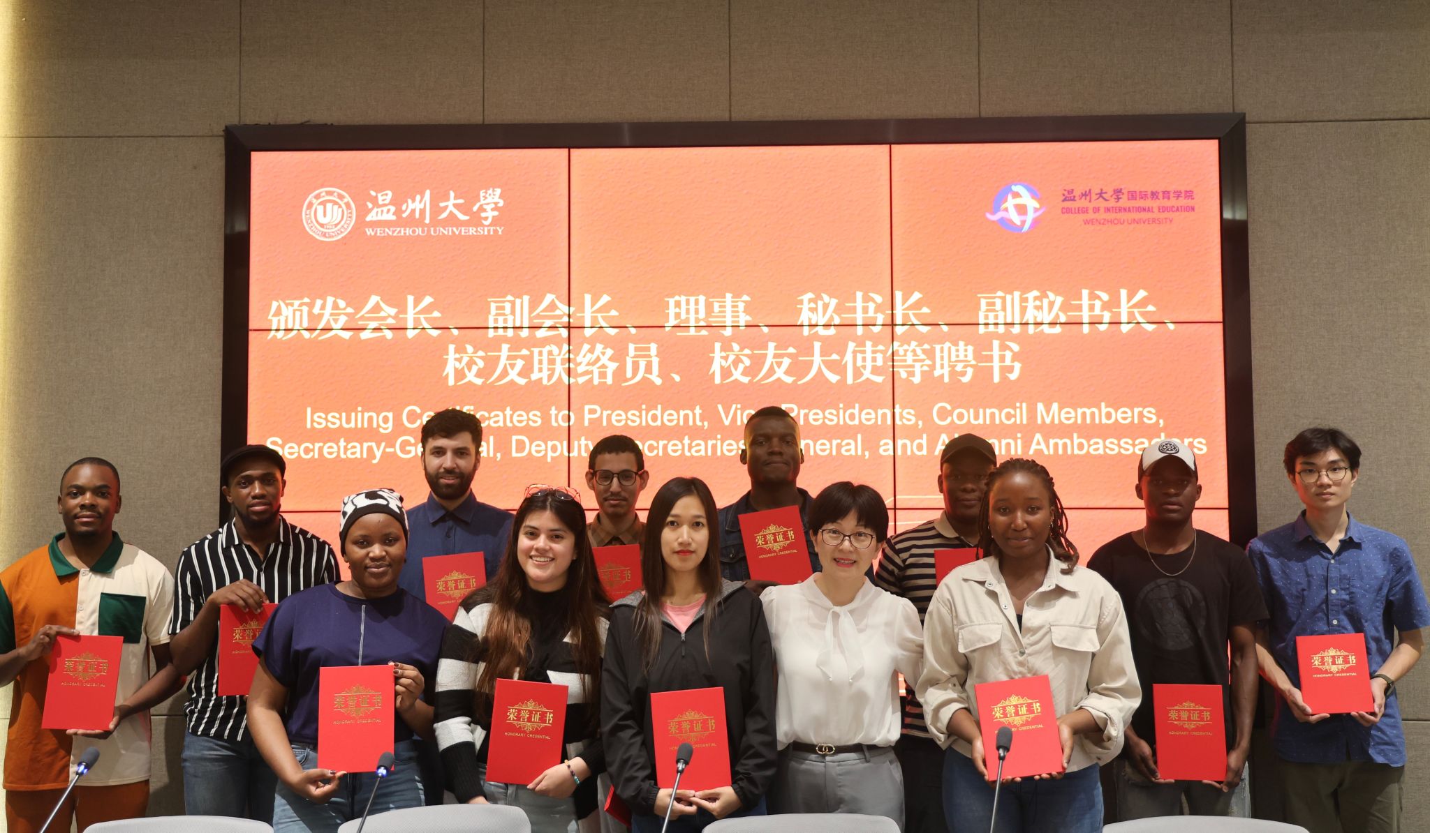 聘书颁发仪式上,副校长王舜为加纳籍校友、新当选会长ADOFO MICHAEL ADJEI颁发聘书,陈宏毅主任、林爱菊书记分别为校友会第一届理事、新一届校友联络员颁发聘书。会长ADOFO MICHAEL ADJEI在温州工作多年,作为优秀校友之一,他表示:“非常感谢学校的培养与厚爱,自己当选会长倍感责任重大,将发挥自己的力量为母校校友工作发展添砖加瓦,也将继续为学弟学妹提供帮助。”